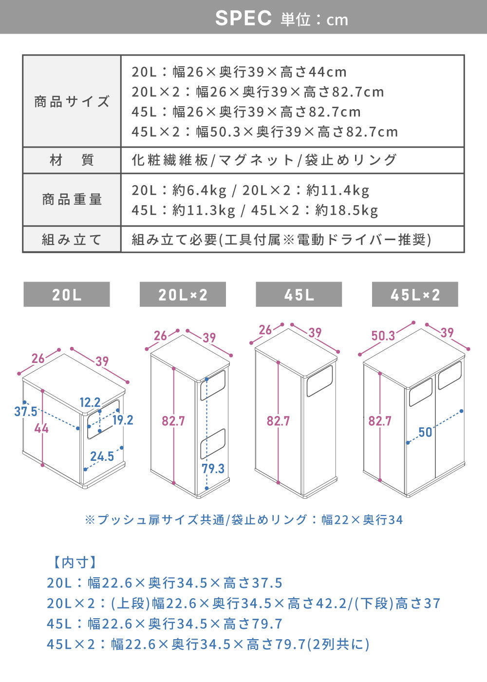 | サイズ | 20L×2:幅26×奥行39×高さ82.7cm 【詳しいサイズ図はコチラ】 |