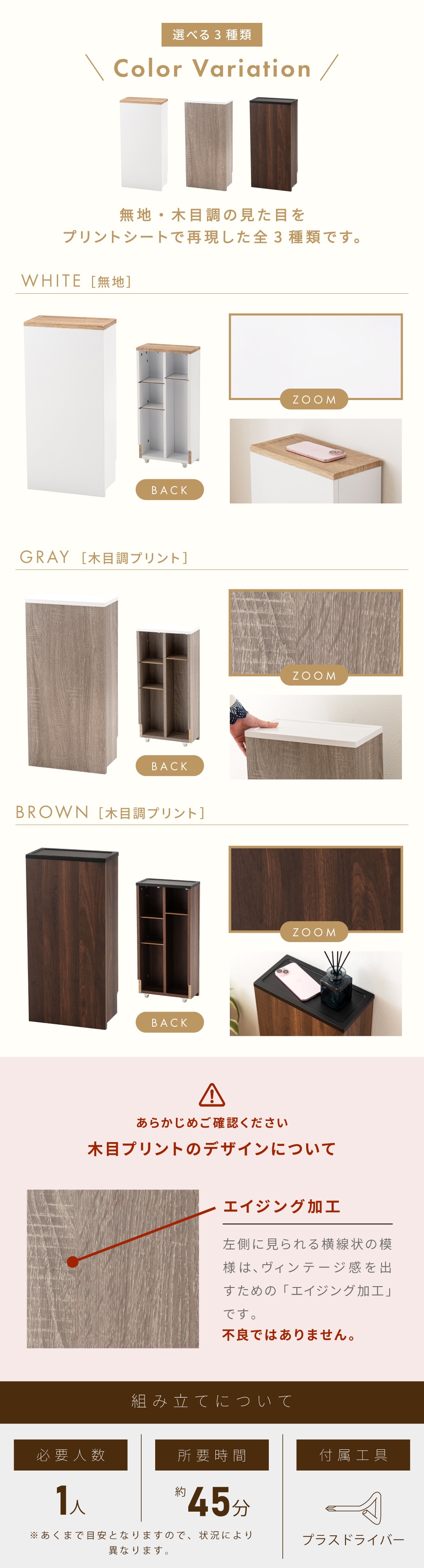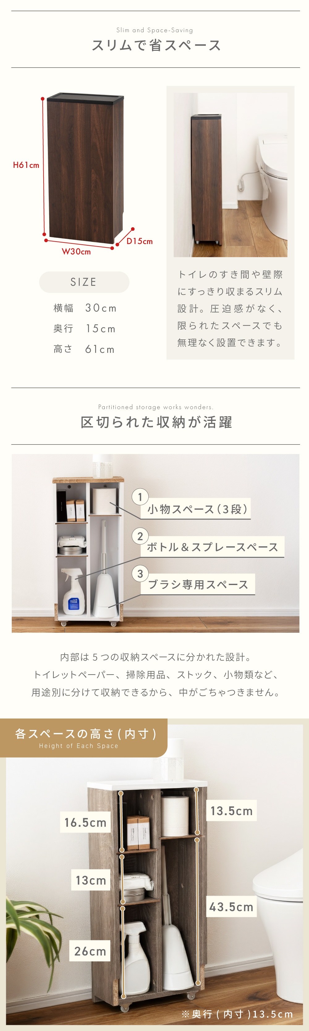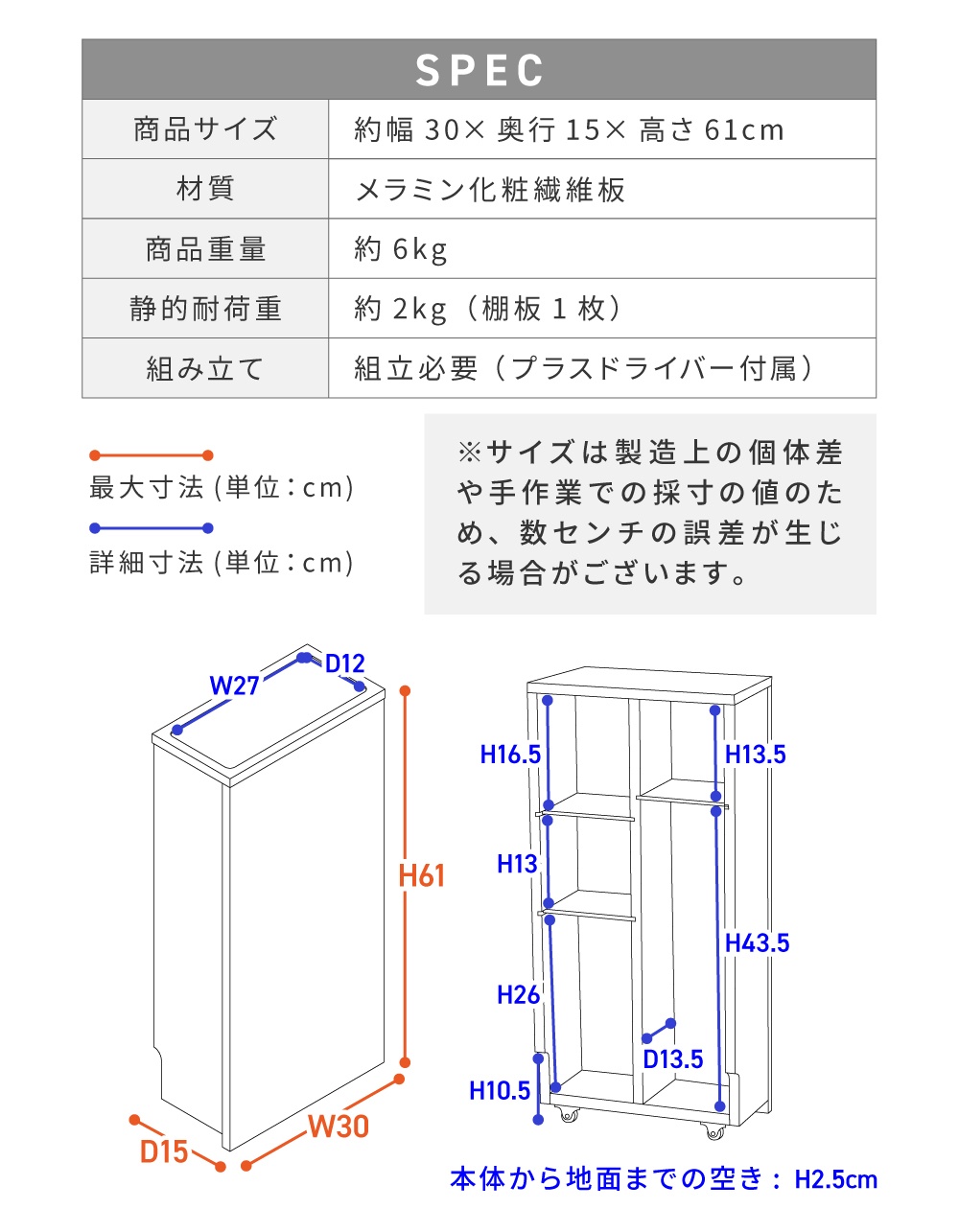 | サイズ | 幅30×奥行15×高さ61cm 【詳しいサイズ図はコチラ】 |