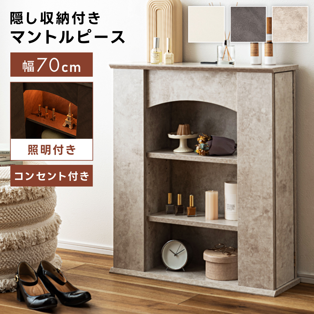 マントルピース 石目調 幅70 高さ80 可動棚 コンセント 隠し収納 かわいい グッズ収納 ディスプレイ コレクション 推し活 推し棚 韓国 おしゃれ 北欧 ナチュラル