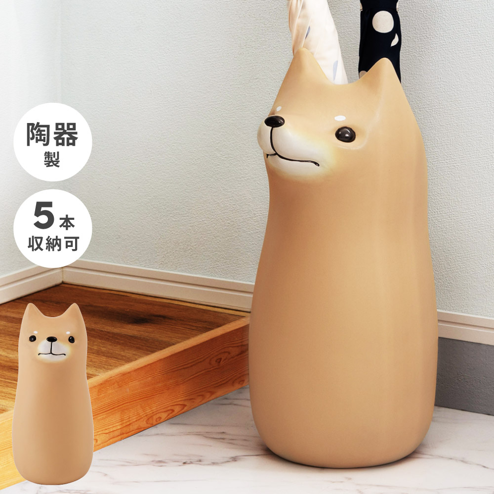 傘立て スリム おしゃれ 陶器 北欧 傘たて かわいい 犬 イヌ 柴犬 シバイヌ 屋外 コンパクト アンブレラスタンド 花瓶 用具入れ 帽子 ベージュ
