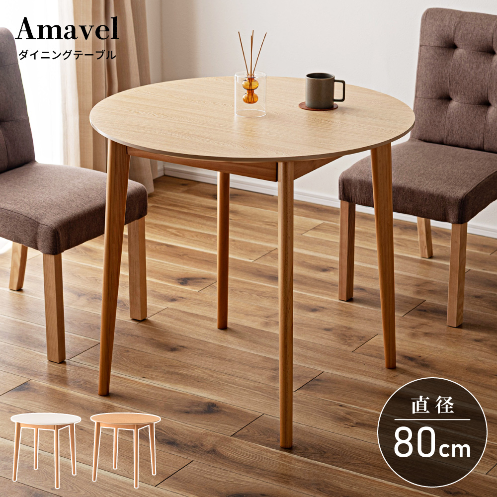 ダイニングテーブル 丸 幅80cm 2人用 リビング 北欧 木製 ラウンドテーブル ウッド 円形 天然木 おしゃれ シンプル 食卓机 カフェ シック 木目調 ホワイト ナチュラル カフェテーブル 在宅勤務 デスク