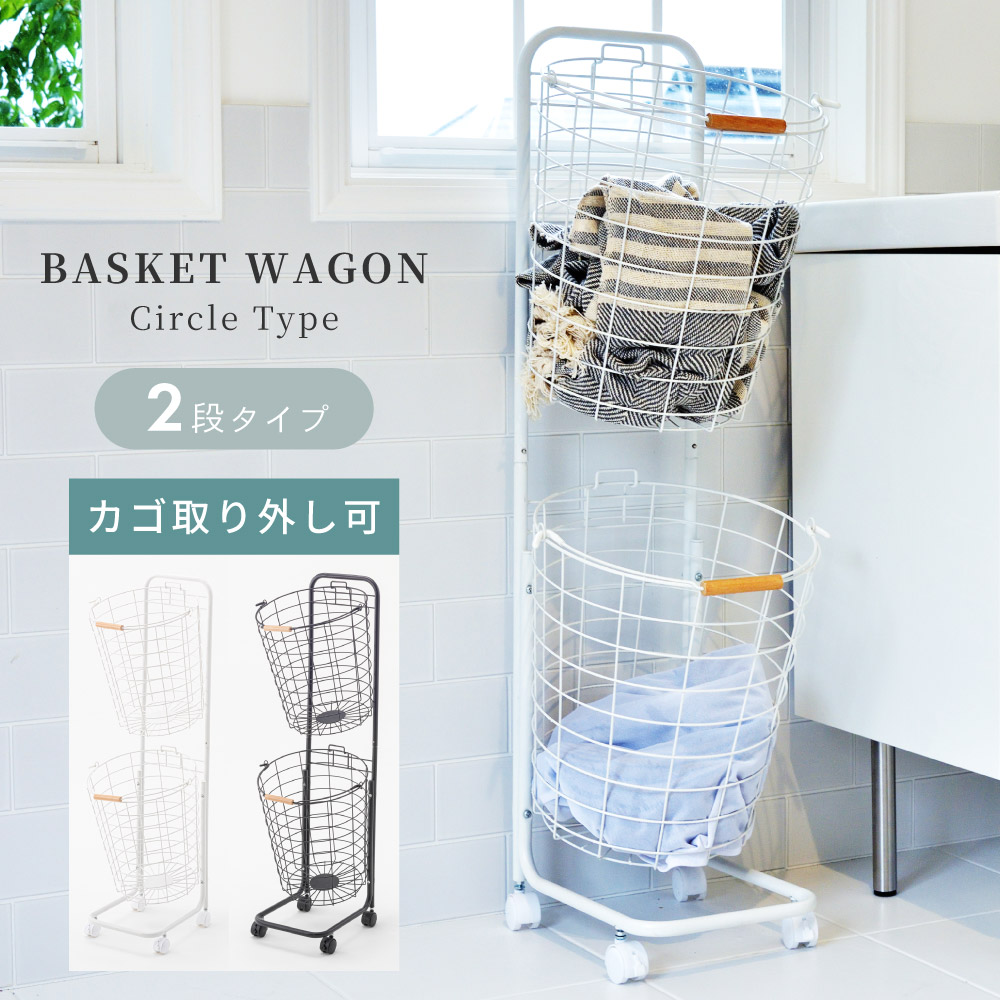 ランドリーバスケット 2段 スリム おしゃれ 丸型 キャスター 洗濯かご 洗濯物入れカゴ ランドリーボックス