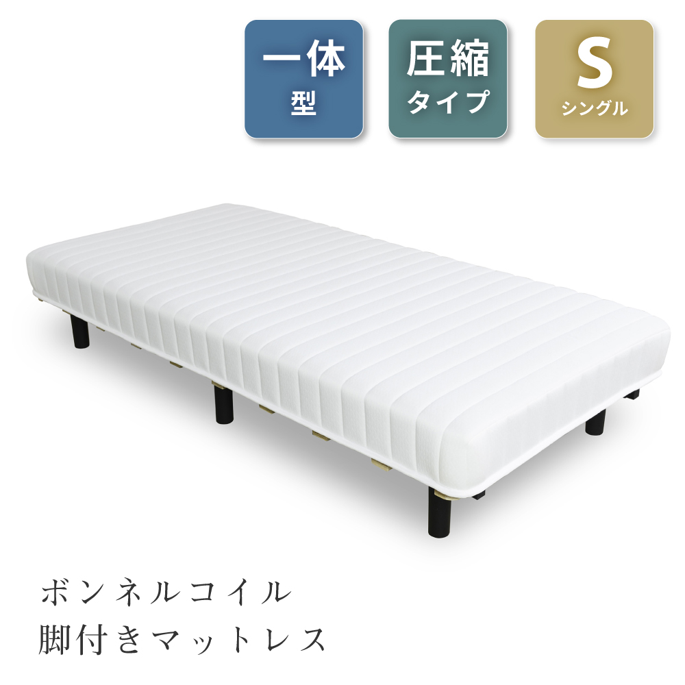 脚付きマットレス シングル 一体型 マットレス ベッド すのこベッド 圧縮 コンパクト ボンネルコイル ボンネル 脚付ベッド 脚付マットレス 脚付マット 脚付き 脚付