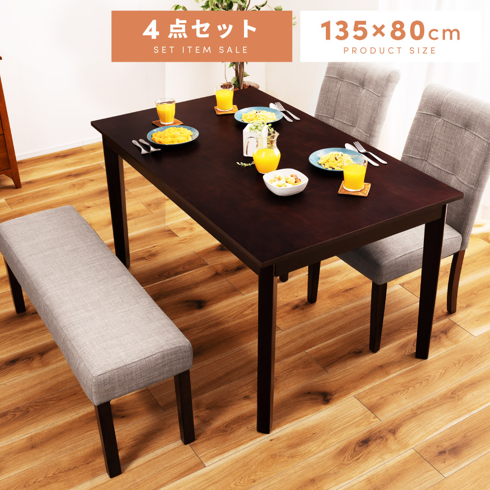 ダイニングテーブルセット 4人用 4点 北欧 おしゃれ ベンチ ダイニングセット 幅135cm 4人掛け 木製 安い