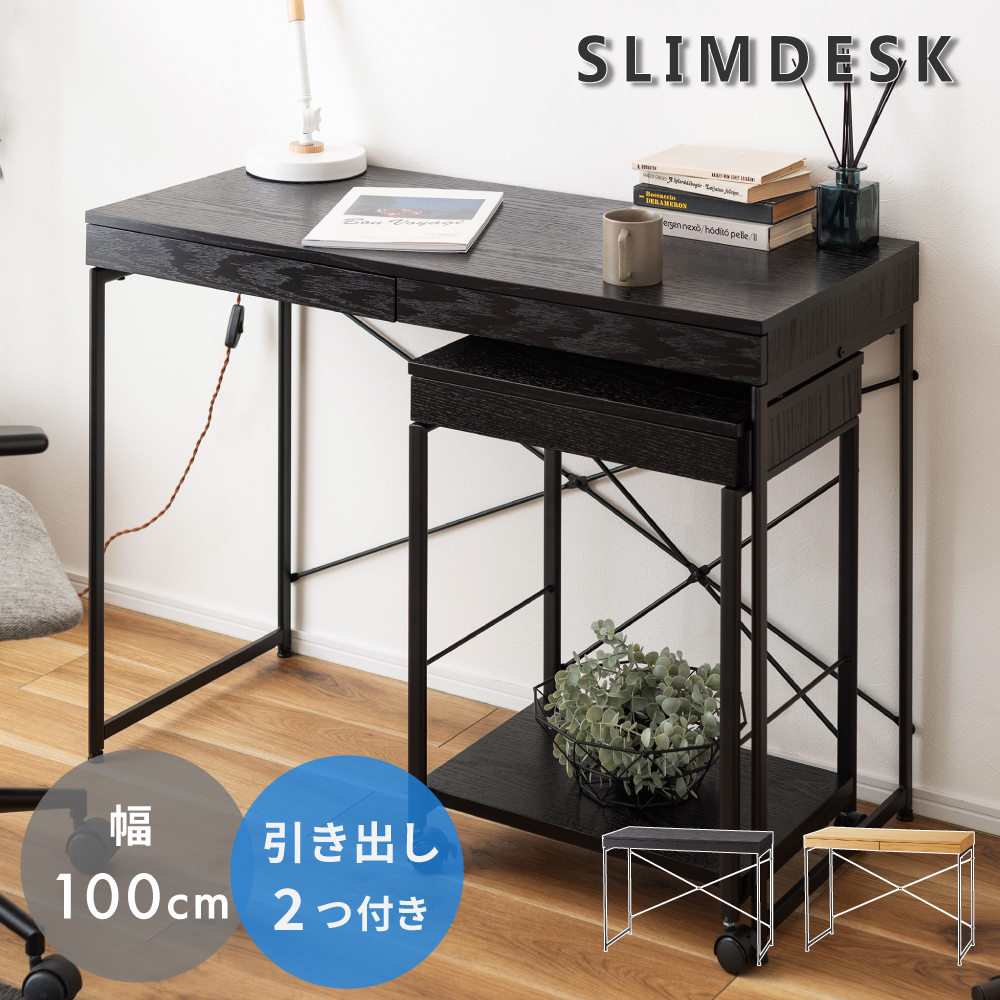 デスク 引き出し パソコンデスク 木製 天然木 アジャスター PCデスク シンプル おしゃれ 北欧 インダストリアル スリム モダン コンパクト モダン スタイリッシュ スチール ブラック 在宅勤務 リモートワーク