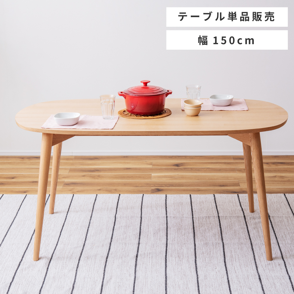 天板には温かみのある優しい木目が特徴のアッシュ材を使用しており、角のない楕円型のテーブルは空間を優しい印象にしてくれます。