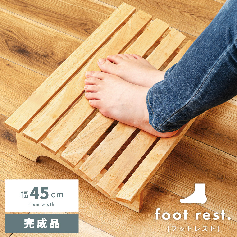 フットレスト 足置き おしゃれ 木製 足置き台 天然木 リラックス デスクワーク 幅45cm デスク オフィス リモートワーク 在宅 Mサイズ 完成品 ナチュラル シンプル コンパクト 省スペース 素足