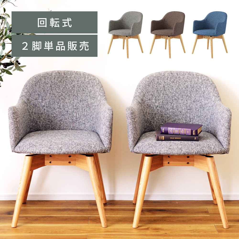 ダイニングチェア 回転 おしゃれ 肘付き 北欧 クッション 木製 ダイニング チェア 座面高43cm 背もたれ イス 椅子 木脚 布地 ファブリック シンプル モダン ブルー ブラウン グレー