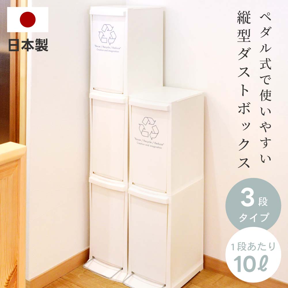 ゴミ箱 おしゃれ キッチン 10リットル 3段 スリム 分別 フタ付き ダストボックス 縦型 縦置き 白 シンプル コンパクト 屋内 室内 蓋付き 省スペース 一人暮らし キッチン ペダル式 縦型 30L 縦長 隙間