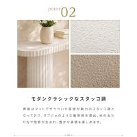 | ポイント | 存在感を放つ彫刻的フォルム。 クラシカルな建築美を感じさせるアーチと直線のシルエット。 スタッコ調の重厚な質感と、現代の生活にフィットするデザイン性が魅力のコンソールテーブルです。 ●曲線と直線が描く造形美 縦のラインが美しい円柱レッグと、柔らかく弧を描く楕円形の天板。 彫刻のような立体感が空間にリズムを生み、洗練された印象に仕上がります。 ●モダンクラシックなスタッコ調 表面はマットでザラついた質感が魅力のスタッコ調となっており、 オブジェのような重厚感を演出。 光の当たり方で陰影が生まれ、豊かな表情を楽しめます。 ●暮らしに寄り添うサイズ設計 高さは75.5cmほどあるため、ディスプレイとしてだけでなく ドレッサーや簡易デスクとしても活躍します。 圧迫感を抑えながら、ミラーやノートPCを置ける実用的なサイズです。 ※表面はスタッコ調の質感仕上げのため、書き物の際は下敷きやデスクマットをご使用下さい。 ●カンタン組み立て 組み立ては脚を回して取り付けるだけの簡単仕様です。 工具不要で、届いてすぐにご使用いただけます。 |