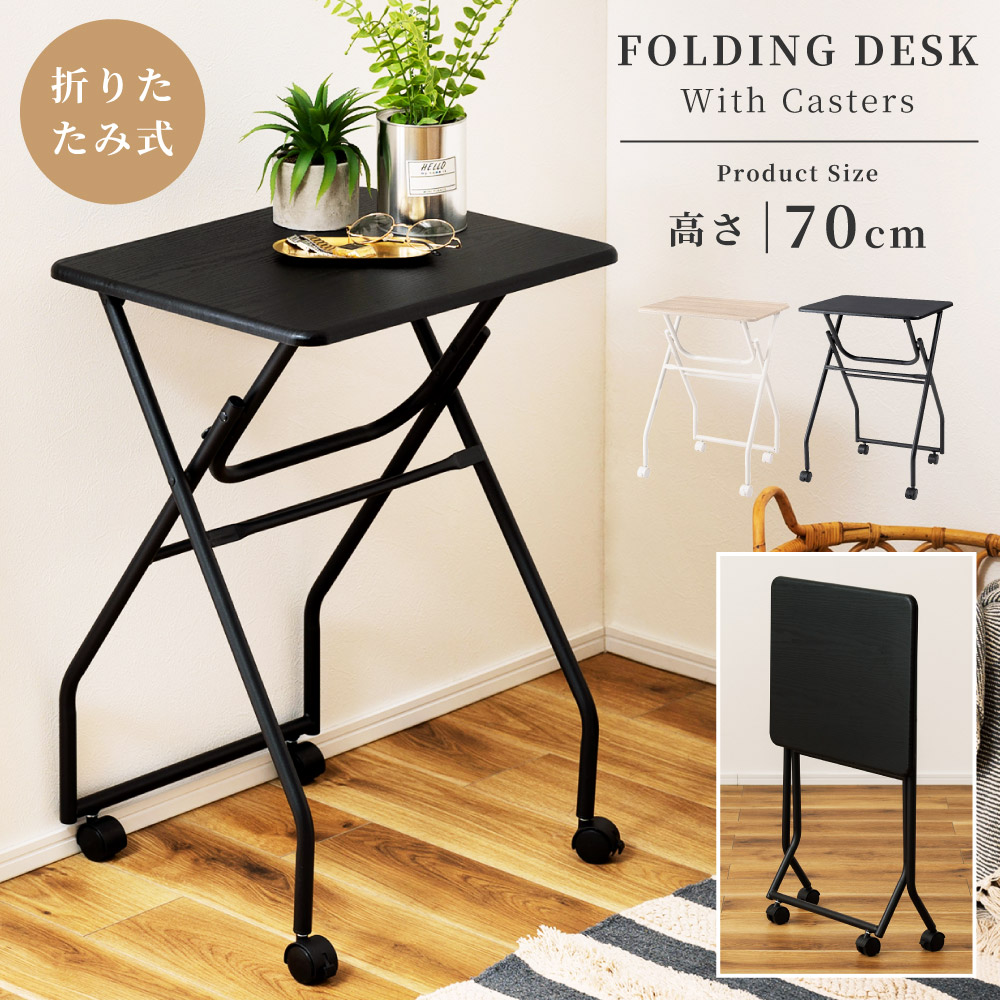 フォールディングテーブル キャスター付き 折りたたみ 省スペース 簡易テーブル テーブル 机 ディスプレイ コンパクト 軽量 ストッパー付き シンプル ホワイト ブラック