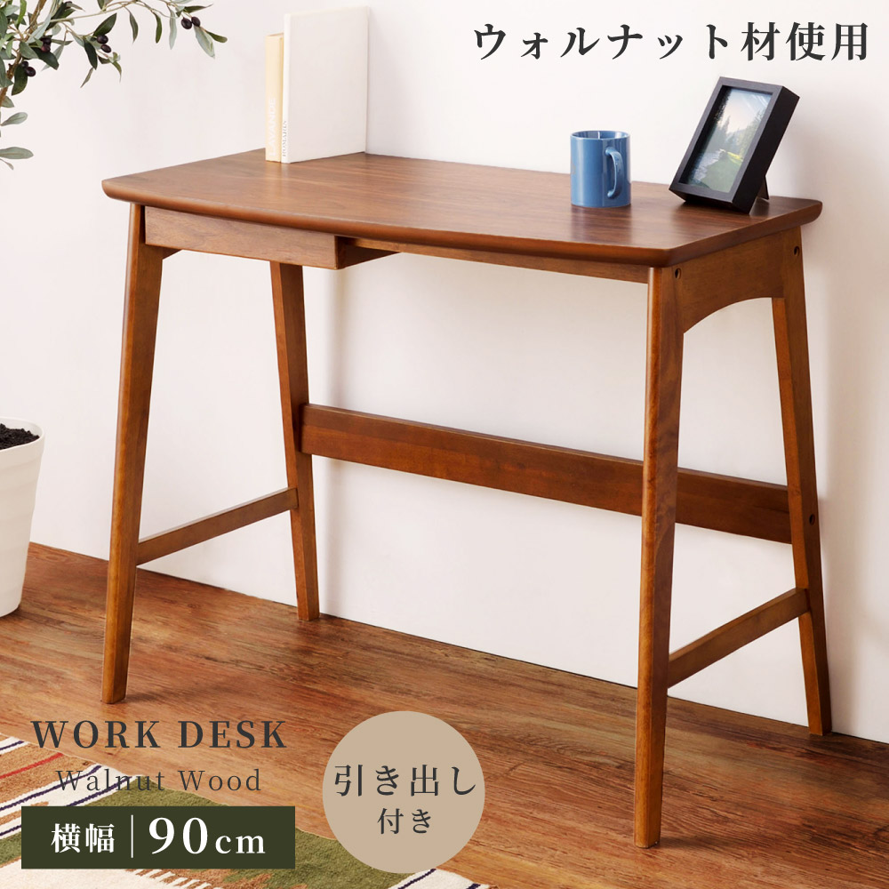 デスク 机 おしゃれ スリム 幅90cm パソコンデスク PCデスク コンパクト 木製 ウォールナット 安い