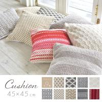 クッション おしゃれ 正方形 45×45 コットン 背もたれクッション 幾何学模様 チェック 赤 北欧 シンプル かわいい ソファクッション 椅子クッション まくら 腰当 腰痛 オールシーズン