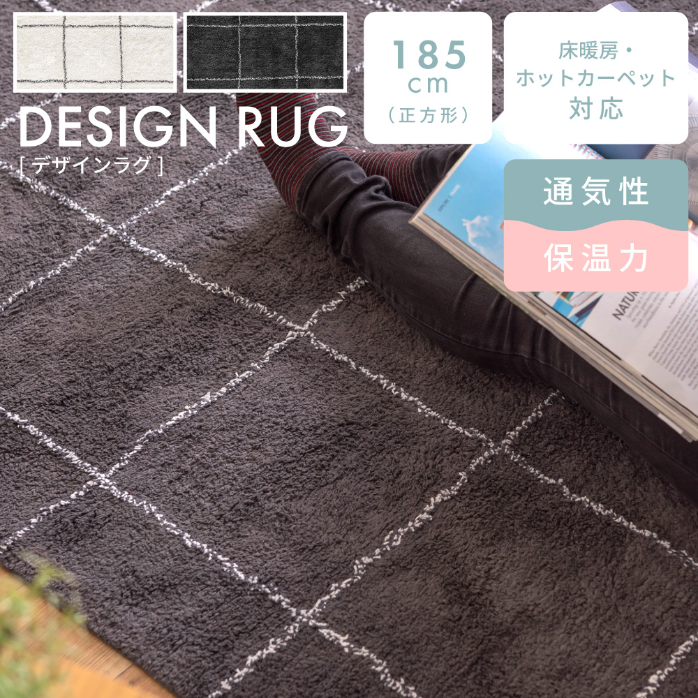 ラグマット シンプル 185×185 ラグ マット 敷物 じゅうたん 絨毯 カーペット コットン 綿 北欧 正方形 グレー アイボリー チェック シンプル