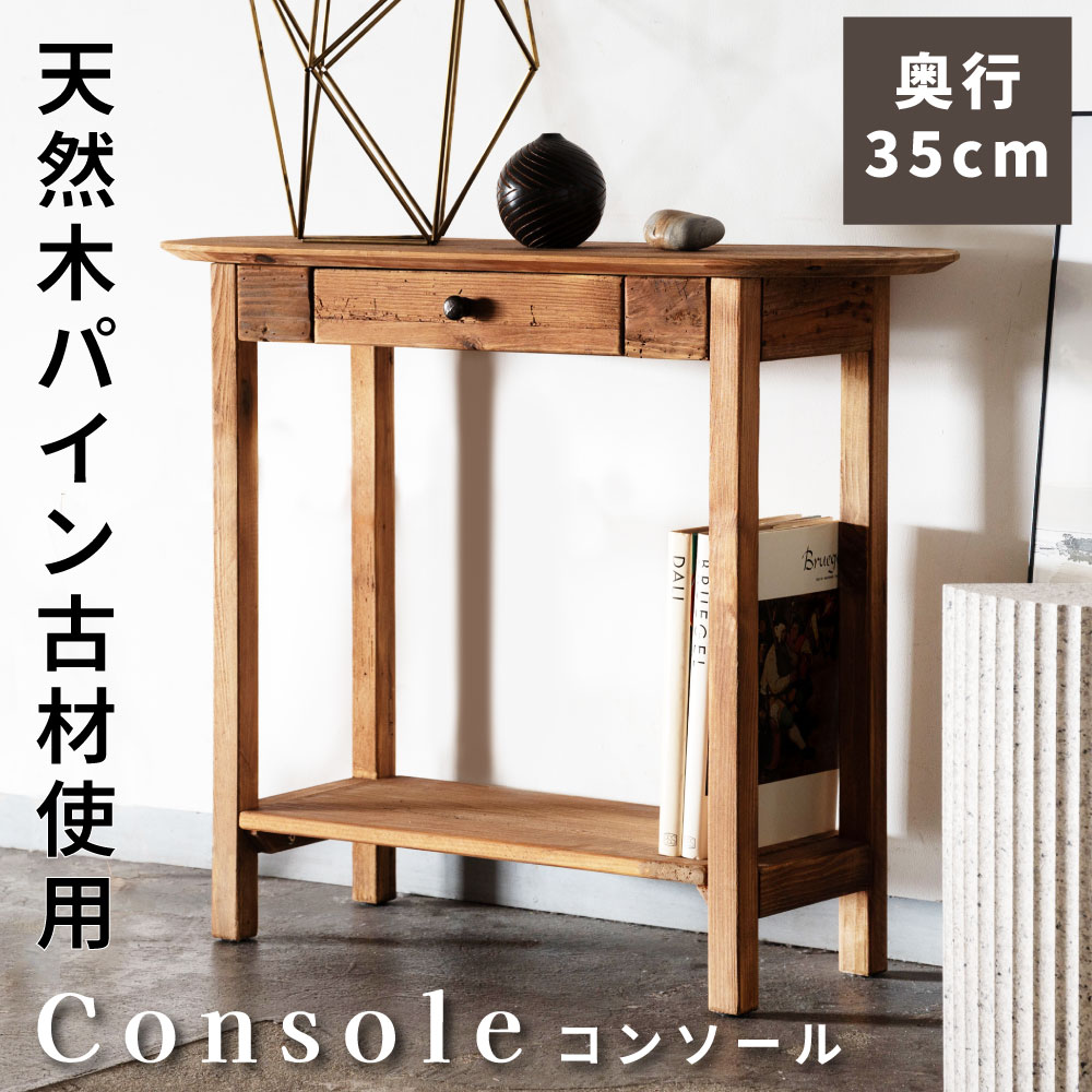 コンソール テーブル リビング 玄関 寝室 作業台 スリム 木製 パイン材 天然木 引き出し付き 収納 棚 飾り棚 ディスプレイ 古材 ヴィンテージ 北欧 おしゃれ アンティーク
