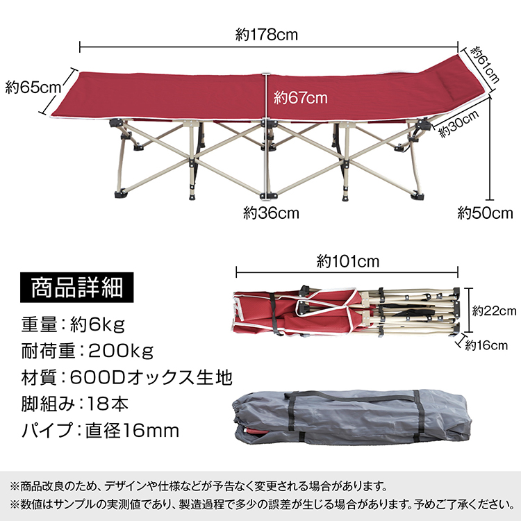 | ●サイズ● | ・展開サイズ:(約)W67cm×D178cm×H50cm ・収納サイズ:(約)W22cm×D101cm×H16cm |