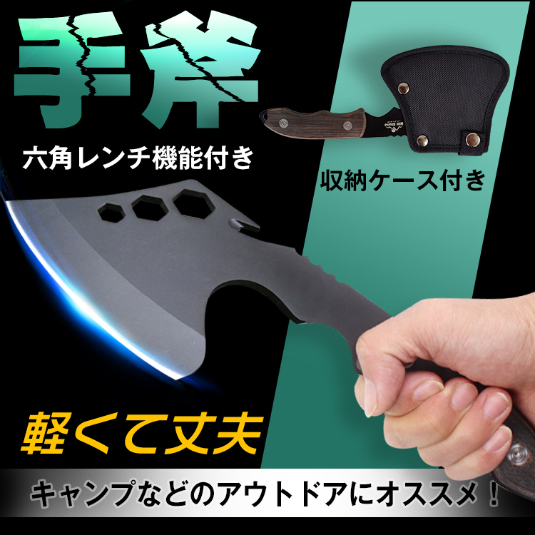 注意・説明 | ※斧の刃はとても鋭利で危険なので手を傷つける可能性があります。 ※お取り扱いの際には必ず手袋の着用をし、最善の注意を払ってご使用してください。 ※お子様の手の届かない所で管理してください。 ※仕様は改善の為に予告なく変更する場合があります。 ※ディスプレイ画面等の環境上、写真と実際の商品の色とは多少違う場合がございます。 ※海外輸入商品により、軽い汚れ/ダメージ等がついている場合がございます。 |
