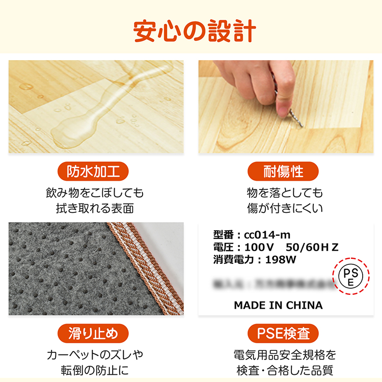 | その他 | ・材質:表面/ポリ塩化ビニル100%、裏面/ポリエステル100% ・消費電力:99w ・電圧:100V 50/60HZ |