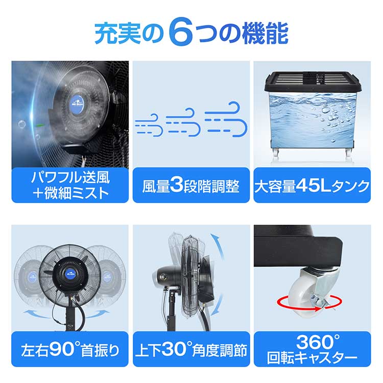 サッカー 工事現場 業務用 スポットクーラー 工場用 扇風機大型 業務用扇風機 夏 イベント 冷却 猛暑 2025 最新 タンク付き 農作業 野外フェス 店舗用 暑さ対策 産業用 ミスト扇風機 大型 微細ミスト パワフル送風 特大 大容量タンク 45L 省エネ 自動首振り 風量3段階 送風機 熱中症対策 360° 回転 キャスター 防災 市役所 町役場 町内会 自治体 警察 学校 集会 ミーティング 行事 粉塵対策 工場 倉庫 建物出入口 スポーツ 体育館 ビニールハウス 避難所 災害時 敬老の日 父の日 母の日 クリスマス プレゼント ギフト