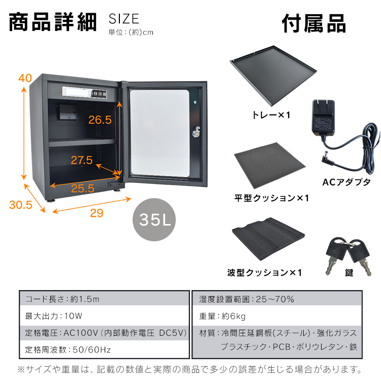 | 名称・内容 | ・商品内容:デジタル防湿庫 35L |