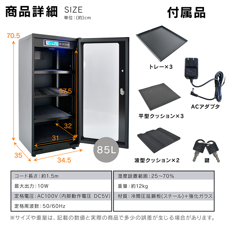 | 名称・内容 | ・商品内容:デジタル防湿庫 85L |