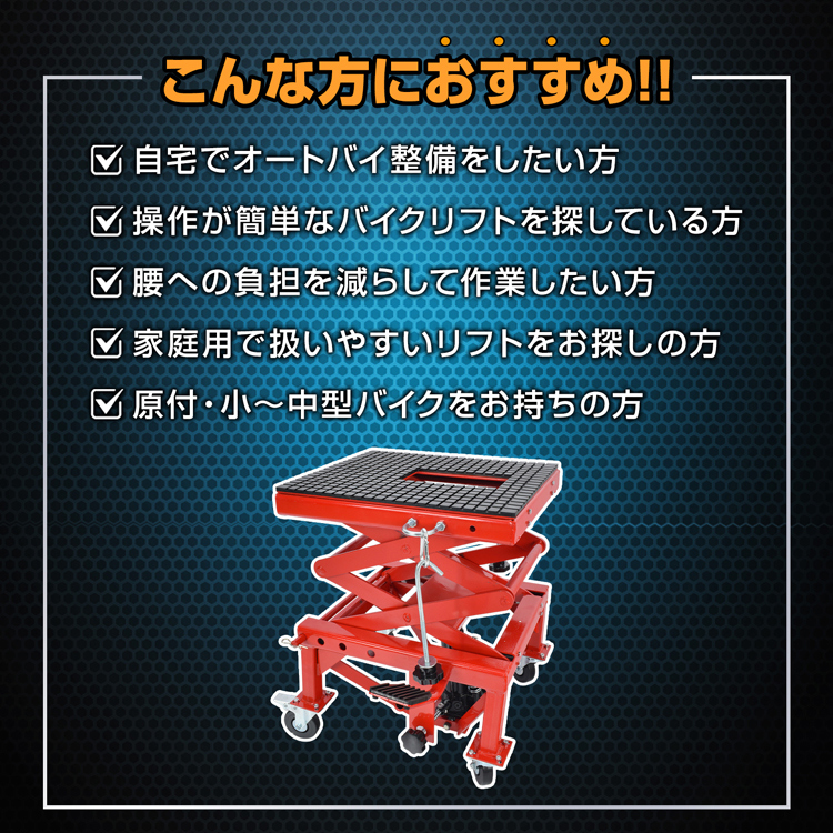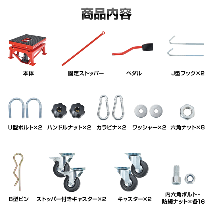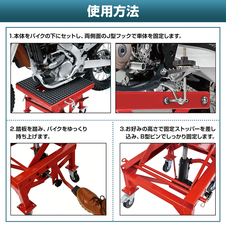 | 名称・内容 | ・商品内容:油圧式バイクリフト |