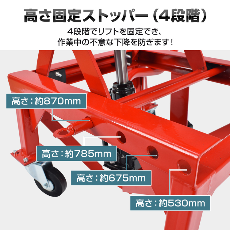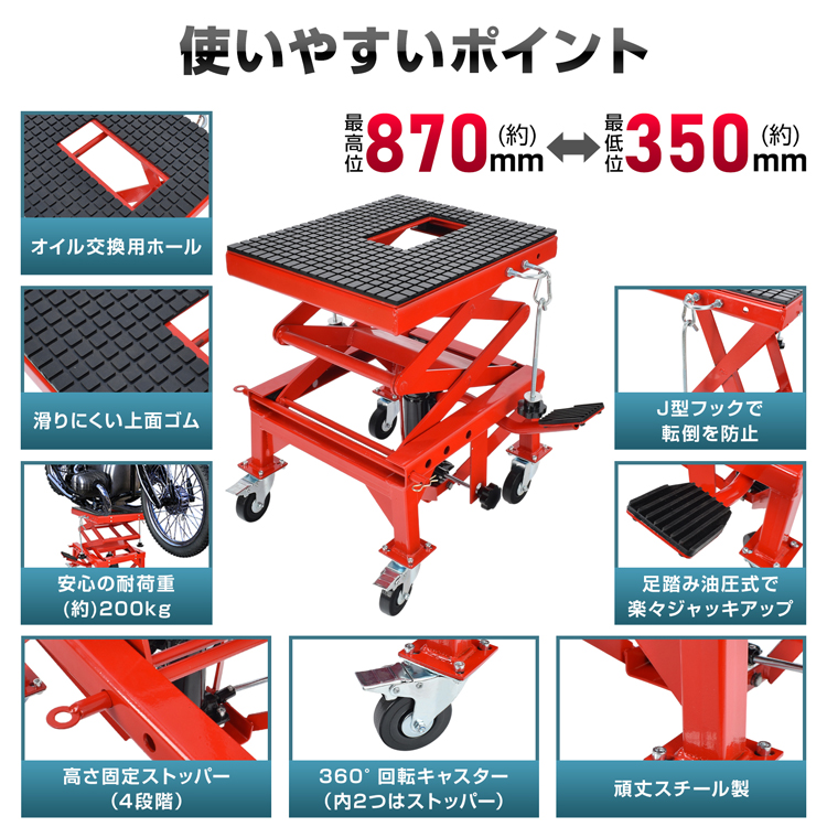 | その他 | ・最高位:(約)870mm ・最低位:(約)350mm ・材質:スチール・ゴム |