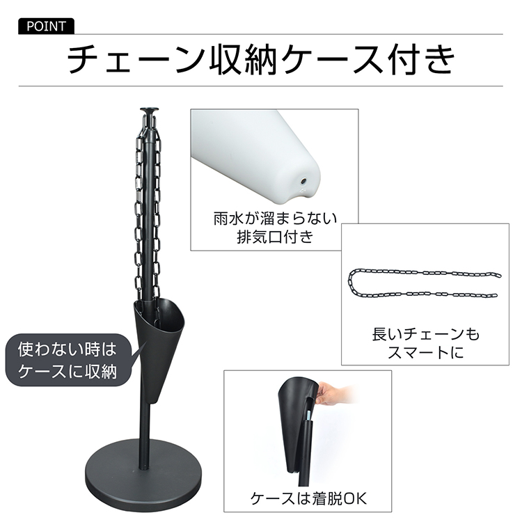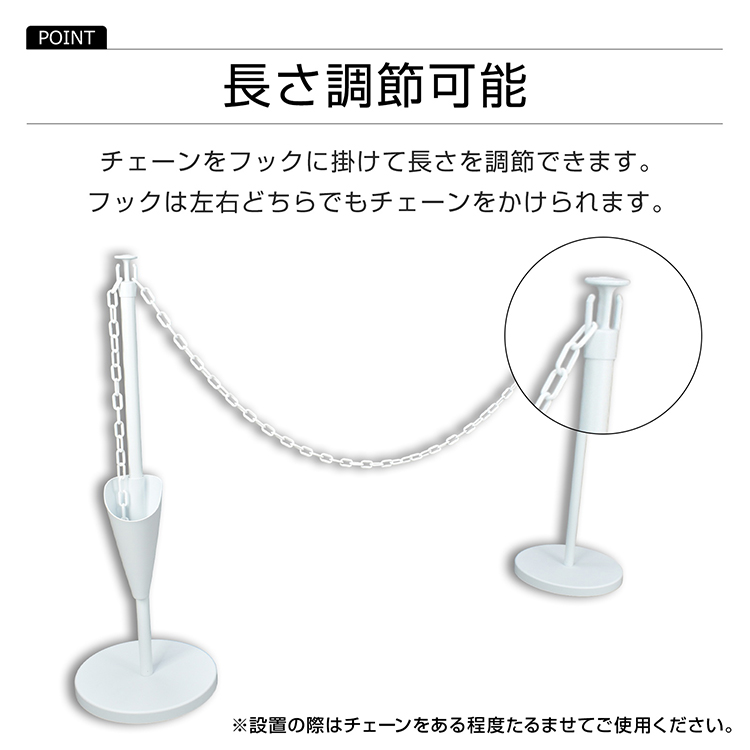 | 種類・サイズ | ・カラー:ホワイト、ブラック ・スタンドサイズ:(約)直径30cm×高さ90cm ・チェーンの長さ:(約)155cm |