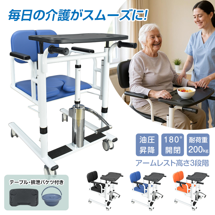 座面脱着式 介護チェア 移動式 自宅用 在宅介護 多目的介護椅子 多機能介護椅子 食事・トイレ兼用介護チェア 多機能キャスター付き介護チェア 多機能介助チェア 移乗リフト 介助椅子 油圧式 昇降 介護 介助 移乗 車イス 移動 排泄 クッション テーブル 便器 バケツ付き 静音 耐荷重200kg ストッパー ステンレス アームレスト 高さ調整 衛生 お手入れ 読書 病院 夜間 敬老の日 父の日 母の日 クリスマス プレゼント ギフト