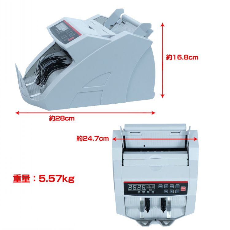 | 注意・説明 | ※紙幣をセットする際は、必ず紙幣の端をそろえてからセットしてください。 ※改造/本来の目的以外/強い衝撃などはお控え下さい。 ※仕様は改善の為に予告なく変更する場合があります。 ※ディスプレイ画面等の環境上、写真と実際の商品の色とは多少違う場合がございます。 ※海外輸入商品により、汚れ/ダメージ等がついている場合がございます。 ○以上、ご同意の上ご購入ください!○ |