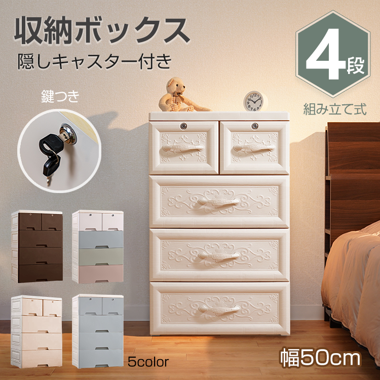 収納ボックス4段 リビング 収納 ボックス おしゃれ 4段 収納 ボックス 衣類 衣装 ランドリー ケース タンス プラスチック 引き出し 鍵つき 整理 スリム