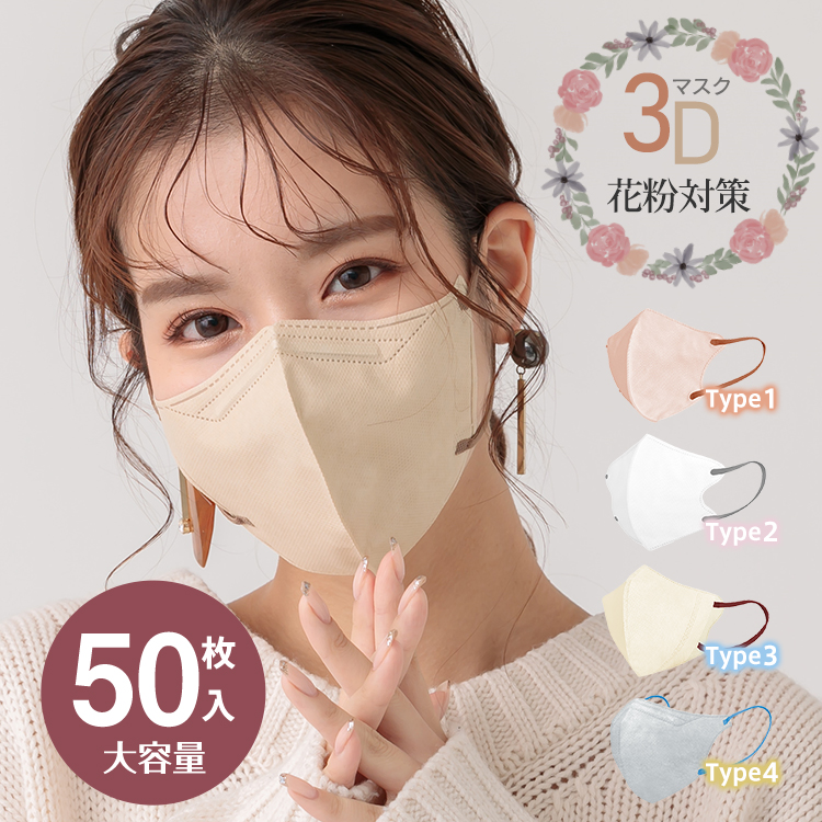3Dカラーマスク 3Dマスク 立体構造 3層構造 不織布マスク 小顔 くすみカラーマスク 血色カラー 春夏 バイカラー 50枚 大容量 花粉 ポイント利用