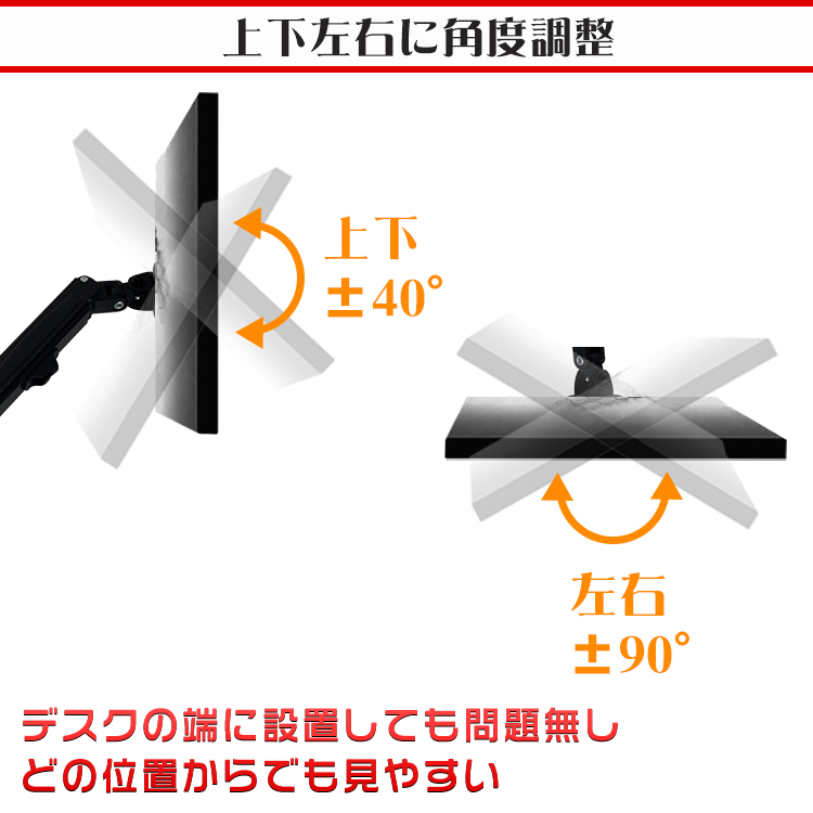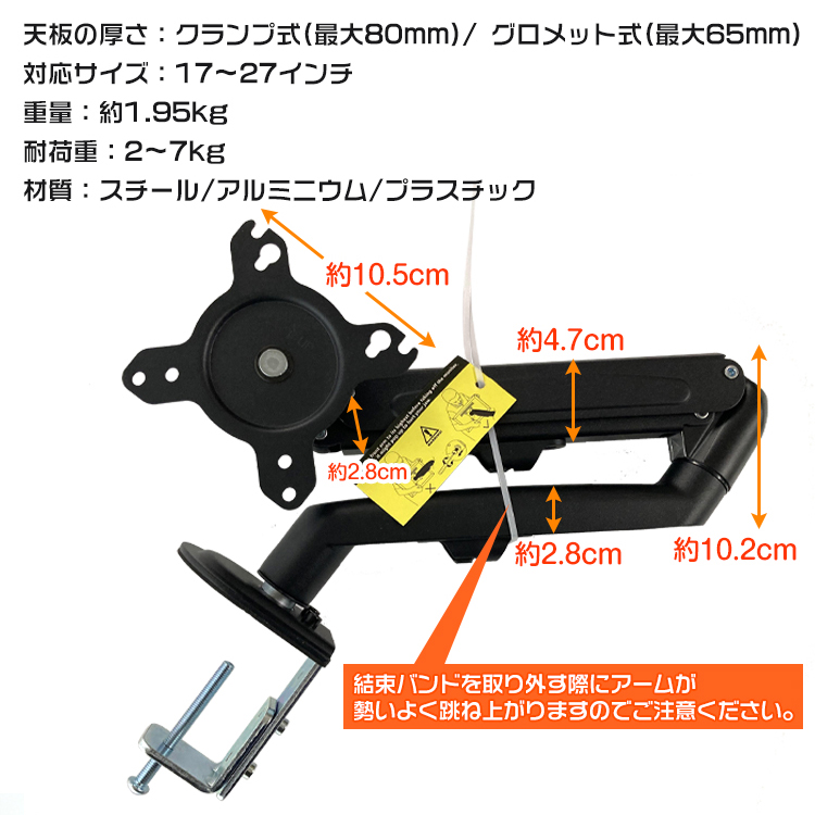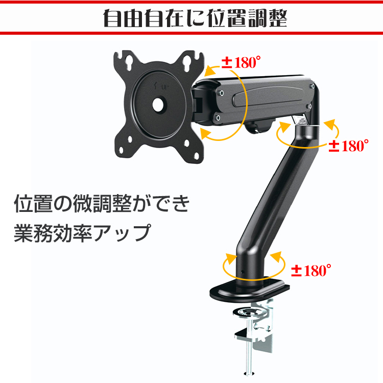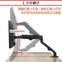 液晶モニター 吊り下げ 卓上 ディスプレイスタンド マウントアップ 可動式アーム 13インチ vesa75/100 耐荷重7kg 位置 自由自在 固定 姿勢改善 疲労軽減 角度調整 家庭用 会社 上下 左右 360° 回転 縦向き ガススプリング 圧力 アーム スタンド pc クランプ ガス圧式 グロメット デスク マウント 液晶 ゲーミング オフィス 敬老の日 父の日 母の日 クリスマス ブラックフライデー プレゼント ギフト