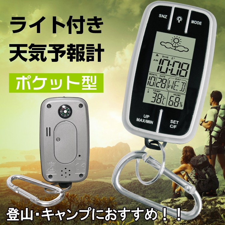 時計 アウトドア カラビナ ウォッチ 天気予報計 コンパス 温度 湿度 スヌーズ機能 アラーム LED od354
