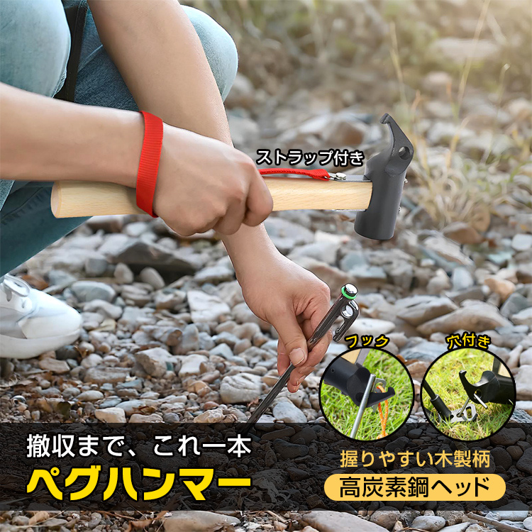 キャンプハンマー ペグ抜きハンマー 携帯ハンマー ペグ撃ちハンマー タープ 設営 ペグ打ち イベント トンカチ 安全ストラップ付 テントハンマー テント設営 タープ設営 ソロキャンプ 携帯 グッズ レジャー 海 運動会 パーティー 出店 防災 避難 緊急 非常用 臨時 女性 レディース 作業 グリップ テコ bbq バーベキュー 敬老の日 父の日 母の日 クリスマス ギフト プレゼント ポイント利用