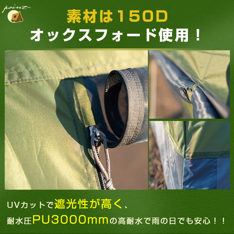 | その他 | ・シート素材:150Dオックスフォード ・テントポール材質:鉄 ・耐水圧:3000mm |