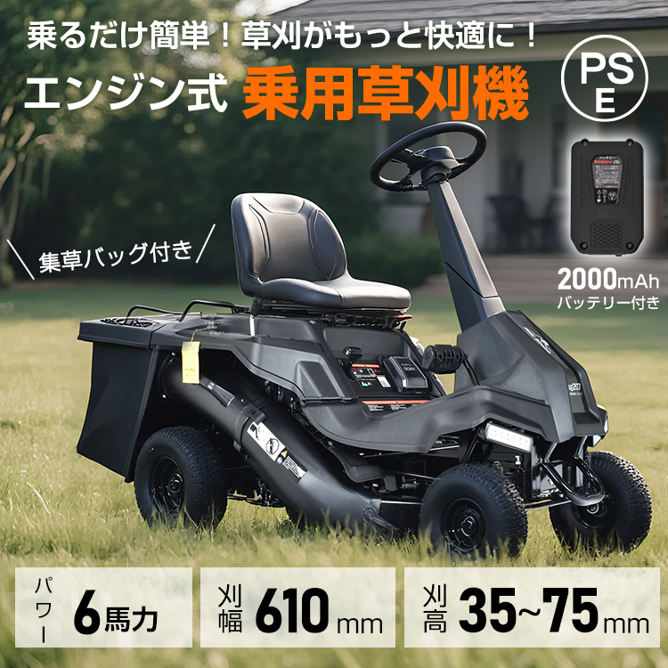 | 種類・サイズ | ・本体サイズ:約76×183×103cm ・刈幅:約61cm ・刈高:約35〜75mm |
