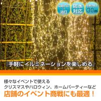 | 種類・サイズ | ・カラー:インディゴブルー/ウォームホワイト/レインボー/ホワイト ・電飾の長さ:(約)30m ・コードの長さ:(約)2m |