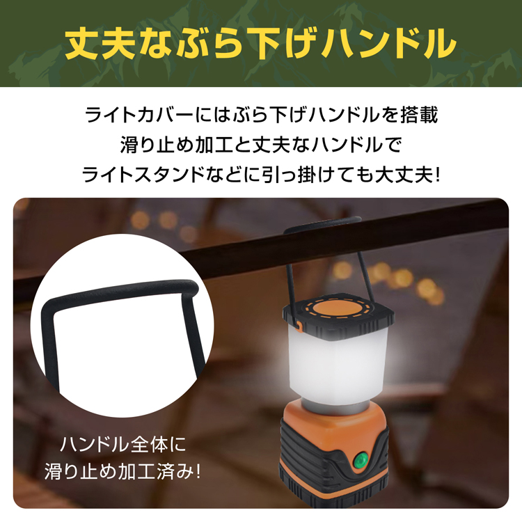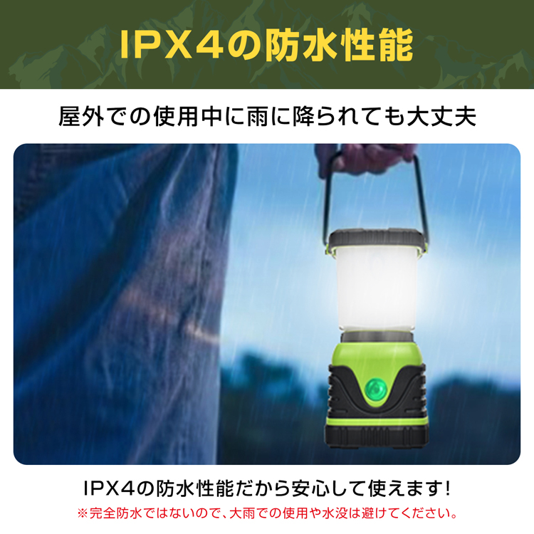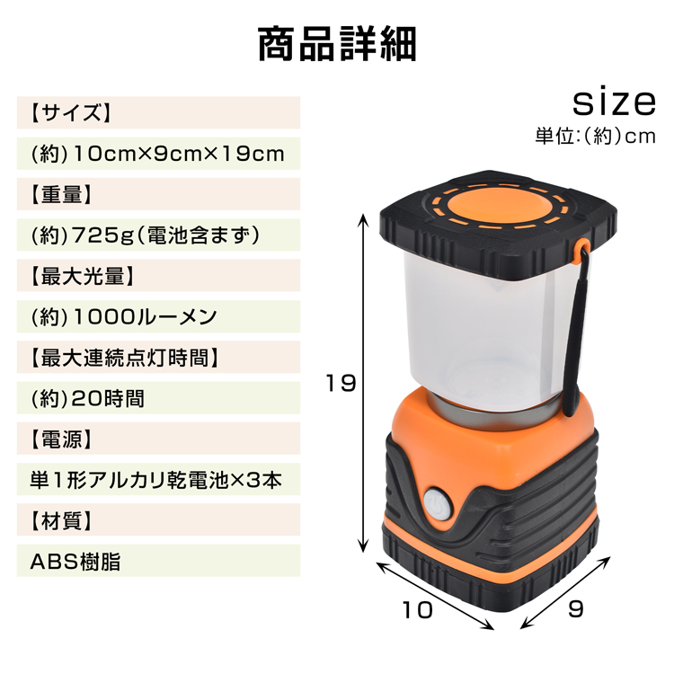 | その他 | ・最大光量(約):1000ルーメン ・最大連続点灯時間(約):20時間 ・防水性能:IPX4 ・材質:ABS |