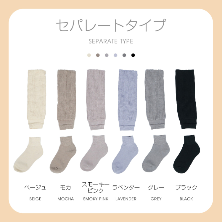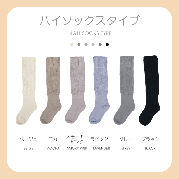 | 種類・サイズ | ・カラー:ベージュ/ブラック/グレー/ラベンダー/モカ/スモーキーピンク ・サイズ:23-25cm |