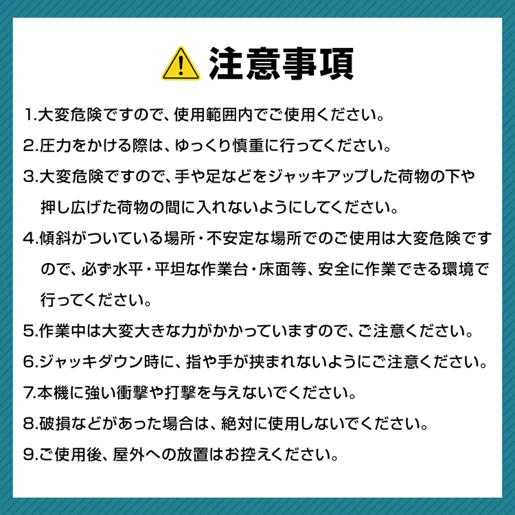 | 重量・耐久 | ・重量:(約)6kg ・耐荷重:(約)10t |