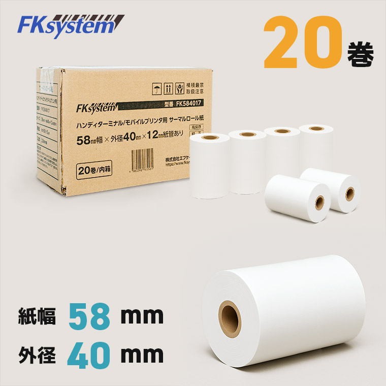 感熱レジロール紙 58mm×40mm 高保存タイプ 20巻 MP-B20対応 サーマルプリンター 汎用 POSレジ対応 感熱レシート FK584017-20 輸入紙 海外加工