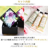 商品特徴 | 枯れないお花プリザーブドフラワーの boxアレンジメントとシルクのような テクスチャーでしっとりうるおす ミニハンドクリームとのセットです。 ハンドクリームは持ち運びに便利な ミニサイズ。3種類の中から1つ お選びいただけます。 |
