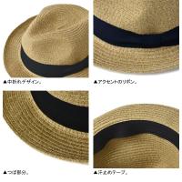 化繊のストロー(麦わら)風素材で作られた、中折れハットです。