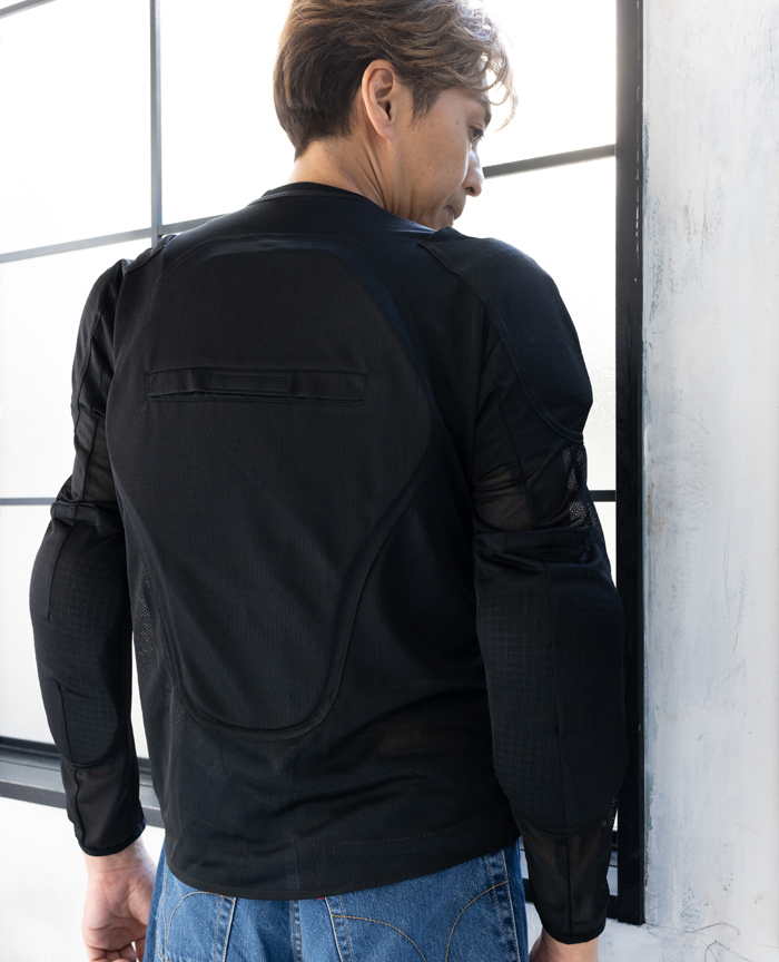 ストレッチメッシュ生地とソフトメッシュプロテクターで構成された非常に軽量なインナープロテクター。[肩][肘][背中][胸部]の各プロテクターは、外付け仕様とした事で非常に良い着心地を実現。用途に応じて別売のハードタイププロテクターやお手持ちのプロテクター等にも入れ替え可能な汎用性が魅力。