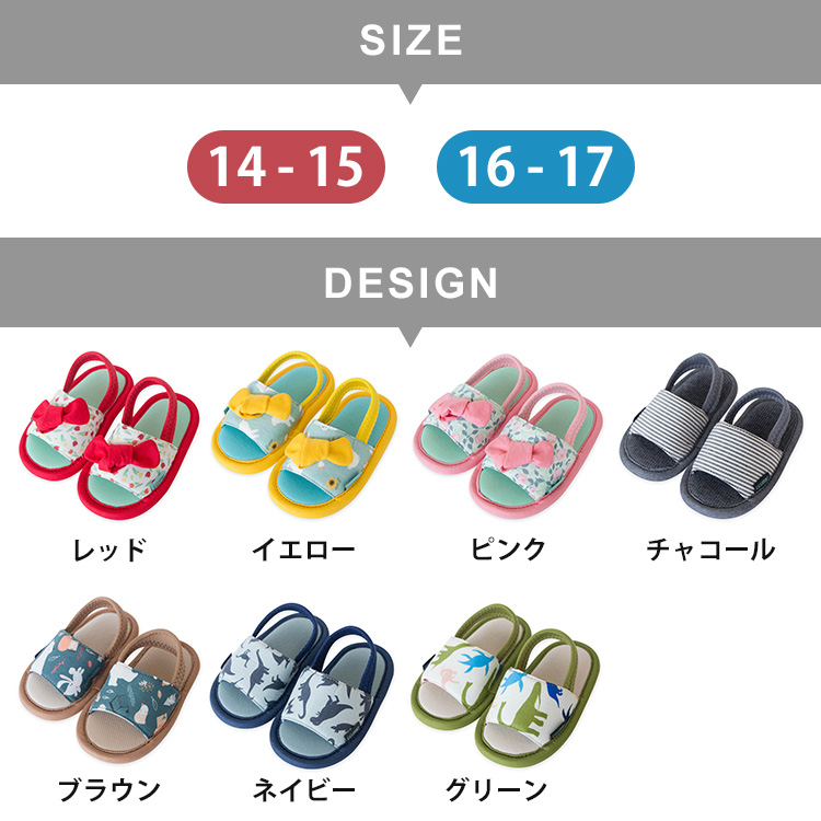 | 以下のサイズ、デザインからお選びください。 【サイズ】 ・14-15(底15cm/ワイズ6cm) ・16-17(底17cm/ワイズ7cm) 【デザイン】 レッド、イエロー、ピンク、チャコール、ブラウン、ネイビー、グリーン |