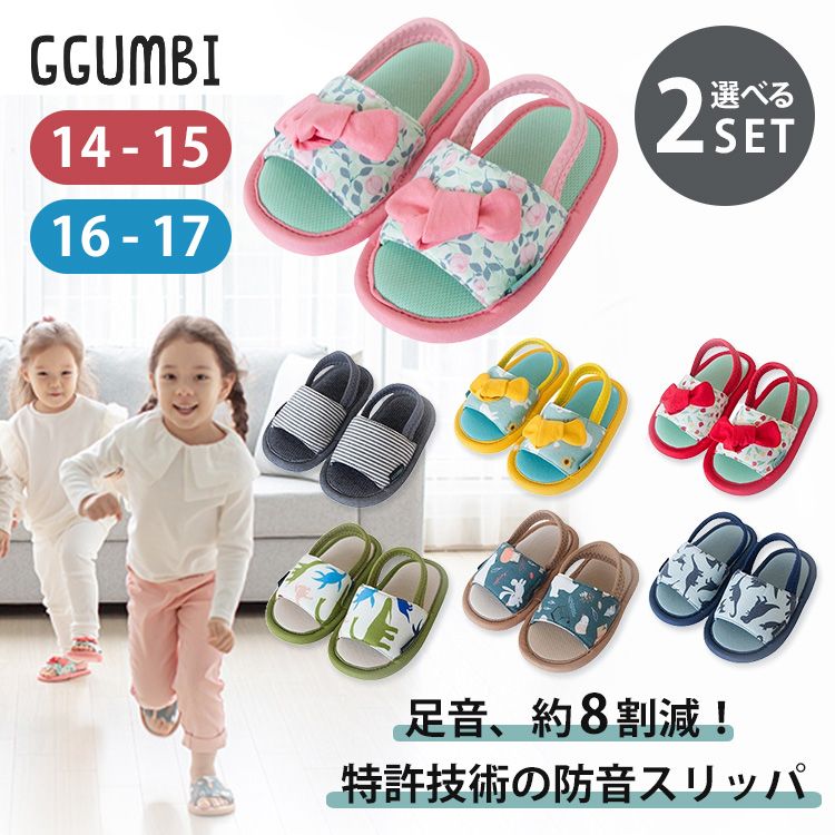 | 商品名 | 選べる2個セット GGUMBI 騒音防止スリッパ ルームシューズ 子供用(14-15/16-17) |