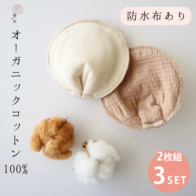 | インスタで話題!華布のオーガニックコットン母乳パッド(防水布あり/2枚組)×3個セット |