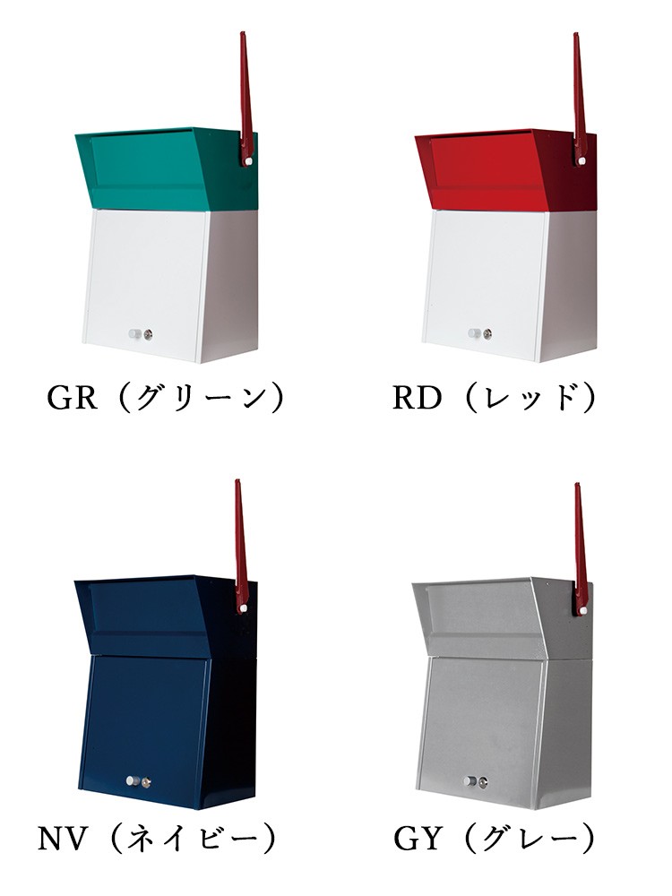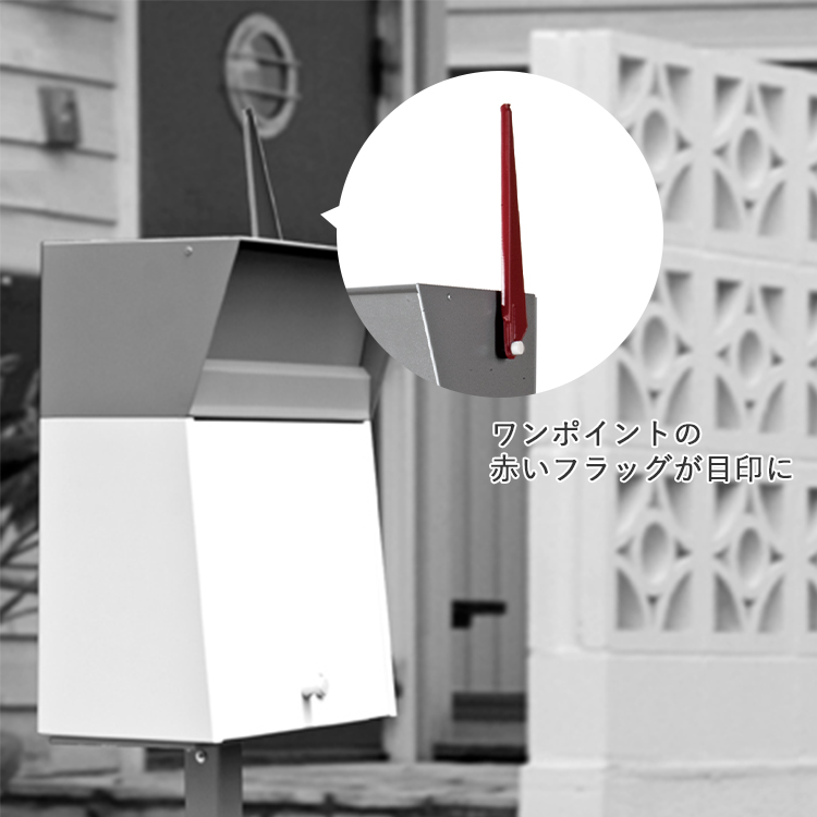 | 個性を主張する、エッジの効いたデザインのクールなメールボックスです。パウダーコーティングによるオシャレなカラーリングと、最近の郵便事情に配慮した大き目の郵便物も入れられるサイズが特徴です。 壁に掛けても置いても利用可能。ワンポイントの赤いフラッグが良い目印となってくれます。 |