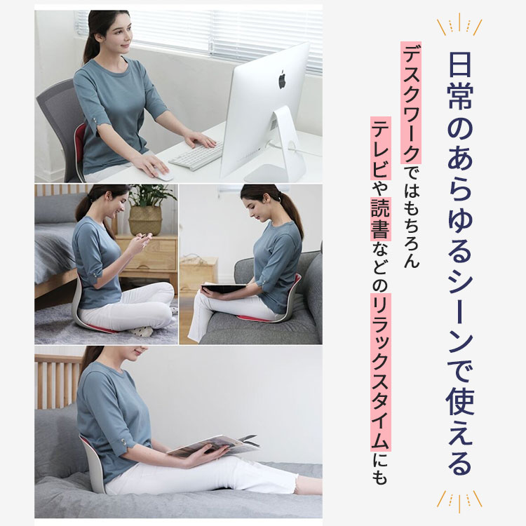 | ● 自然に正しい姿勢へ導く設計 テコの原理を応用:座るだけで骨盤と腰を自然に正しい位置へサポートします。 高弾性素材&人体工学設計:座る人に合わせて適度にしなり、耐荷重は360kg。体重を均等に分散させ、荷重の偏りを防ぎます。 腰の負担を軽減:座っている間、腰をサポートし続けることで、腰や背中の疲労を軽減します。 ● 蒸れを防ぎ、いつでも心地よく 独自のエアホールウェイ換気システム:効率的な空気循環と熱の放出を促し、長時間座っていても蒸れにくい快適さをキープします ● いつでも、どこでもマイチェアに 超軽量880g&便利なハンドル付き:驚くほどの軽さと持ち運びやすいハンドルで、どこへでも簡単に持ち運べます。 多様な場所で使用可能:椅子の上はもちろん、床、ソファ、ベッドの上、車の座席、屋外など、場所を選ばずあなたの座る姿勢をサポートします。 設置も簡単:座りたい場所に置くだけで、すぐに使用できます。 |